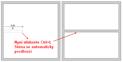 Při zadávání zdí máte nyní k dispozici další klávesovou zkratku. Kdykoli zadáváte stěnu (příčku), můžete automaticky prodloužit stěnu pomocí myši na protější stěnu stisknutím kláves Ctrl+L. Informace: Tato funkce není dostupná pro zadání více stěn (polygonální stěny).